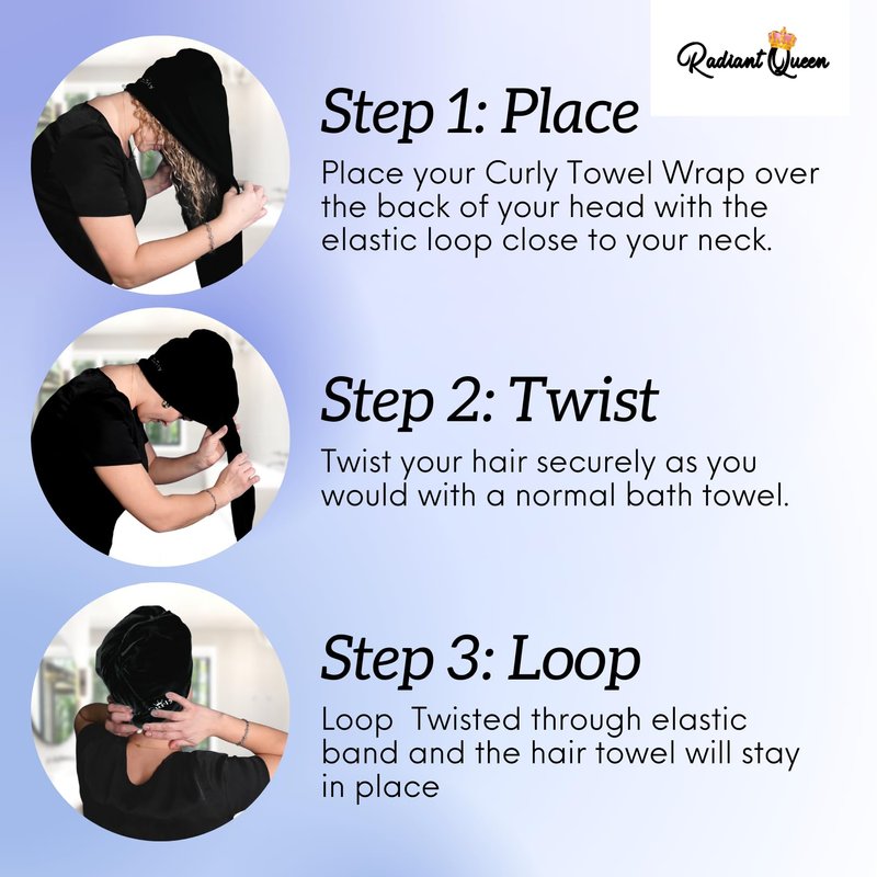 - PLOPPING HAIR TOWEL: Hair plopping is heatless drying technique that involves wrapping the hair into a cotton T-Shirt Material to ensure defined and frizz-free curls.