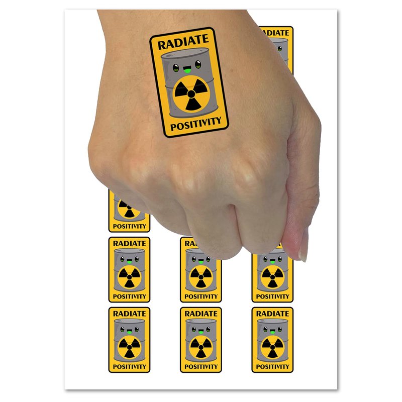Radiate Positivity Radioactive Material Barrel Temporary Tattoo Water Resistant Fake Body Art Set Collection - 15 2" Tattoos (1 Sheet)