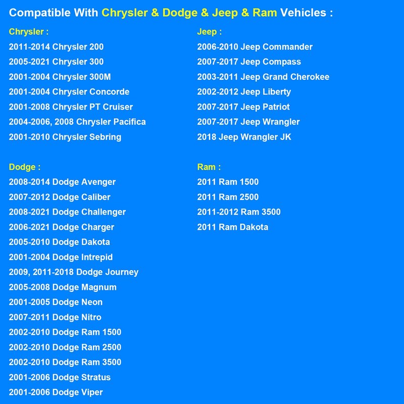 Compatible with Chrysler Vehicles: