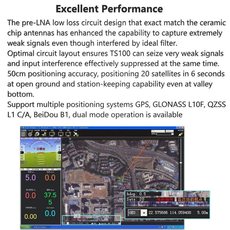 - Excellent Performance: 50 centimeters positioning accuracy, positioning 20 satellites in 6 seconds at open ground, and station-keeping capability even at the valley bottom. Support multiple positioning systems GPS, GLONASS L10F, QZSS L1 C/A, BeiDou B1, the dual-mode operation is available