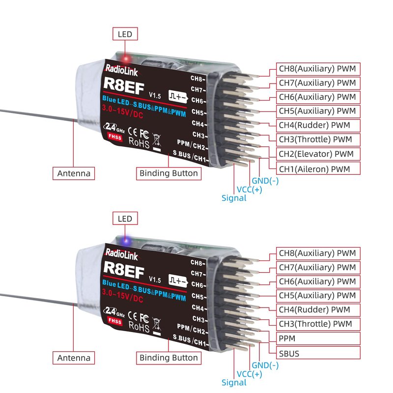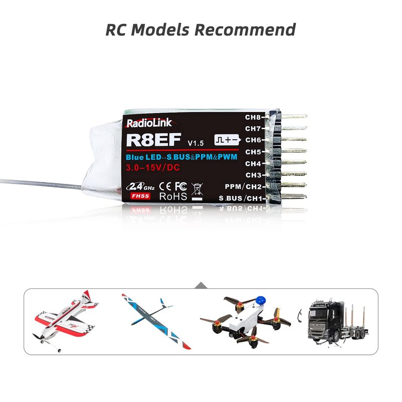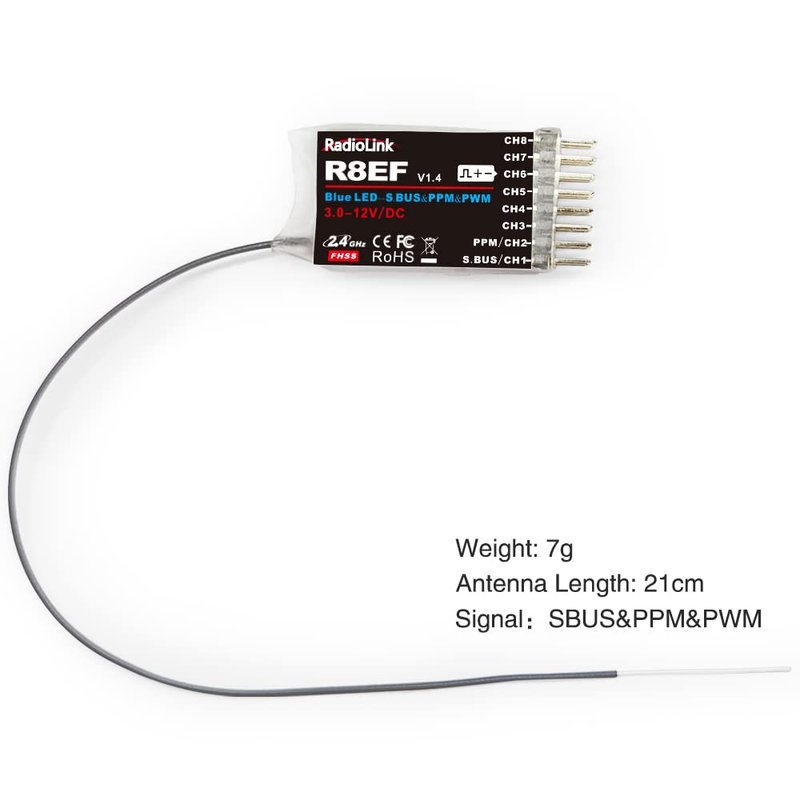 Radiolink R8EF 8 Channels 2.4GHz RC Receiver SBUS/PPM/PWM Long Range Control RX for Airplane Vehicles Robots Transmitter T8FB T8S RC8X RC4GS V3 RC6GS V3