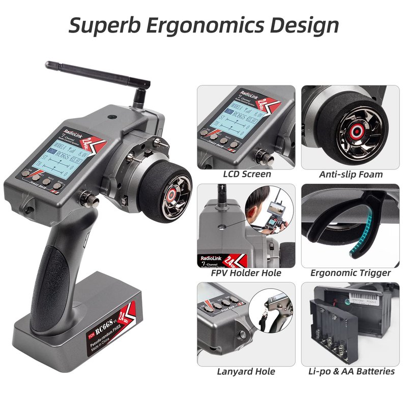 1.Support 6*AA batteries or 2s-4s liPo battery.(Not included)