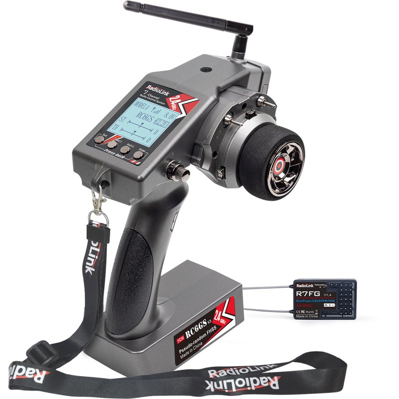 Radiolink RC6GS V3 7 Channels RC Transmitter and Waterproof Gyro Receiver R7FG, 30 Models Storage 2.4Ghz Voltage Telemetry Surface Remote Radio Controller for RC Crawler, Drifting, Car and Boat
