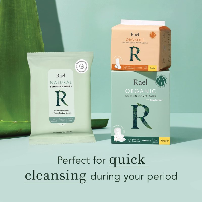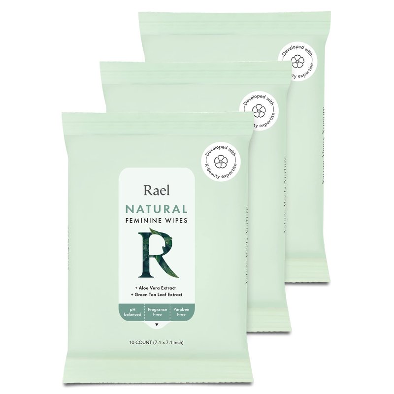 Rael Feminine Wipes, Flushable Wipes pH Balanced - Travel Size, All Skin Types, Paraben Free, Daily Use (10 Count, Pack of 3)