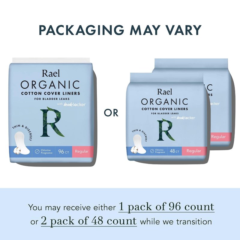 Rael Incontinence Liners for Women, Organic Cotton Cover - Postpartum Essential, Regular Absorbency, Incontinence Liner, Bladder Leak Control, 4 Layer Core with Leak Guard Technology, (Regular, 96 Count)