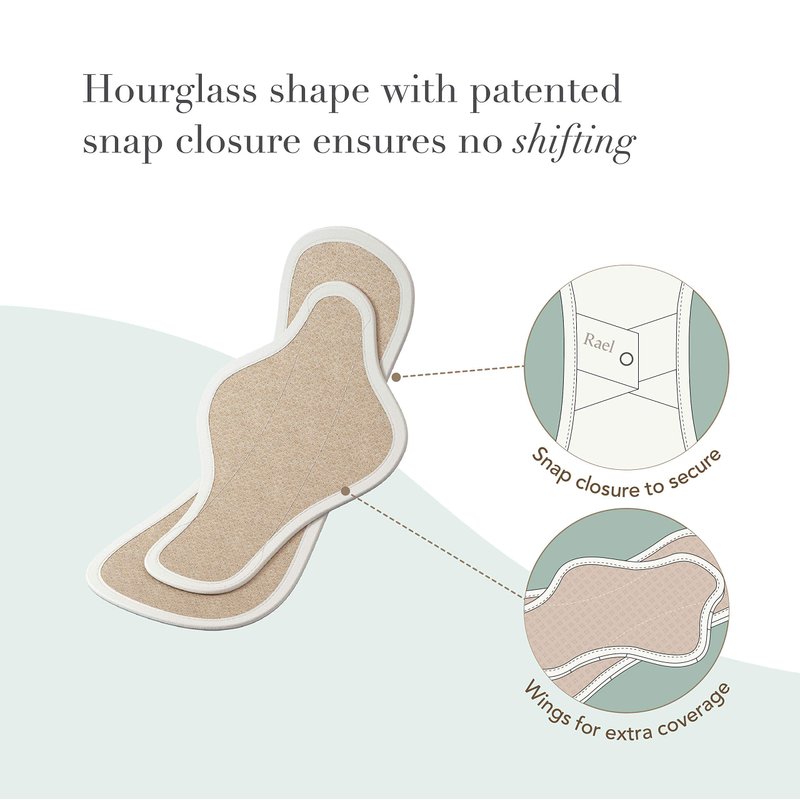 Rael Reusable Pads Menstrual, Organic Cotton Cover Pads - Postpartum Essential, Regular Absorbency, Thin Cloth Pads, Leak Free, Washing Machine Safe, Menstrual Pads with Wings (3 Count, Petite)