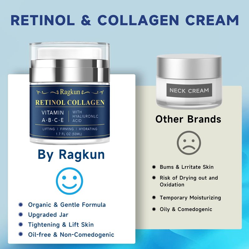 Ragkun Face Moisturizer Retinol Cream - Neck Collagen Cream for Tightening and Firming - Anti Aging Day & Night Facial Moisturizer for Women & Men, Tighten and Lift Wrinkle Cream - 1.7 Fl Oz