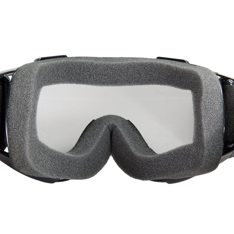 - Black frame with clear lenses, great for tearing up the trail on your snowboard or practicing motocross jumps