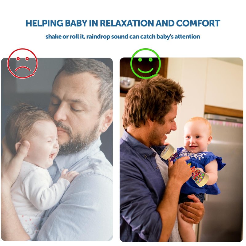 - 【Soothing Raindrop Sounds】: Turn this rain stick over, shake it or roll it around to produce clear and soothing sound of rain sounds. Raindrop sound can capture baby's attention, assisting our baby in relaxation and comfort, especially during moments of anxiety or unease.