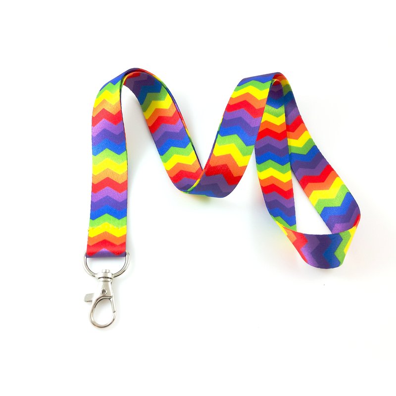Great for holding your id badge or keys, with durable printed fabric that won't chip or fade. This trendy chevron print really stands out in a vibrant rainbow color. Made for comfort, with soft fabric and generous 17" length. The swivel lobster claw style clasp allows quick and easy access to your id badge, keys, cell phone etc.