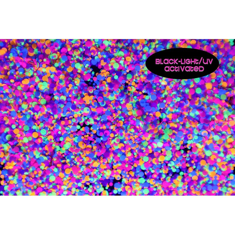 Rainbow Circles Face & Body Glitter - Chunky Glitter - UV Avtivated - Uses Include: Festival Rave Makeup Face Body Nails Resin Arts & Crafts, Resin, Tumblers, Bath Bombs - Multi-Size Circle Shape