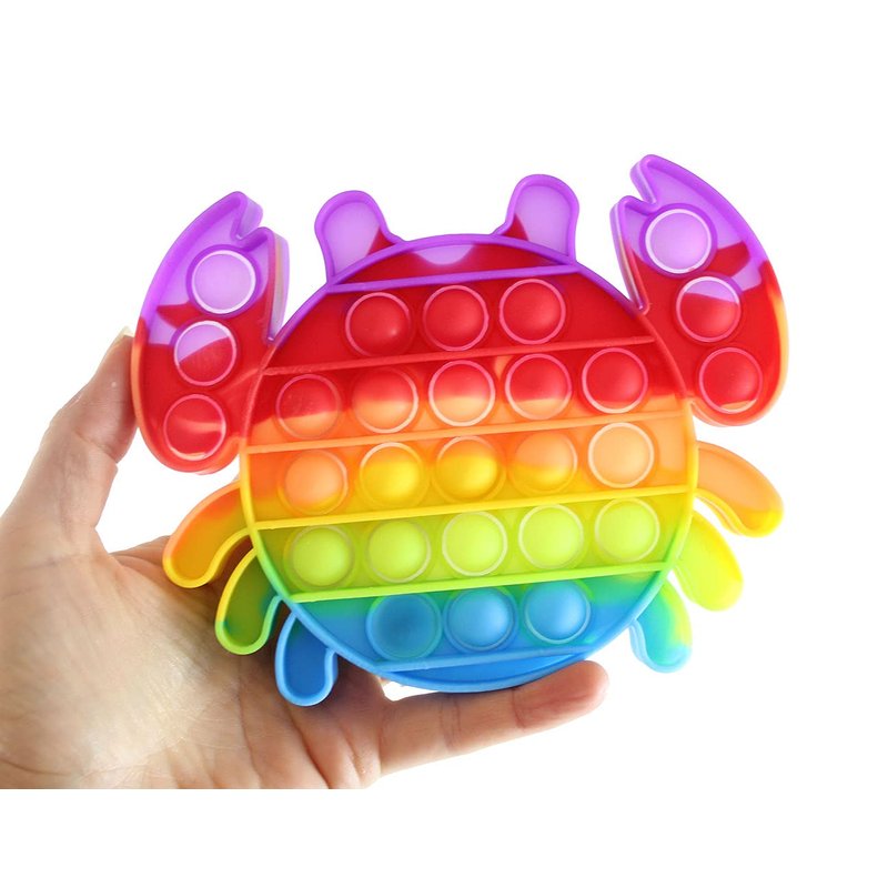 Rainbow Crab Bubble Pop Fidget Toy - Ocean Sea Animal Silicone Push Poke Bubble Wrap Fidget Toy - Pop the Bubbles Down Then Flip it over and Do it Again - Sensory Stress Toy OT