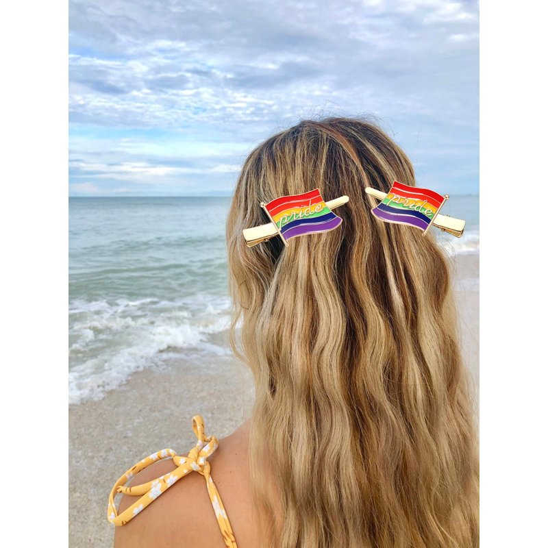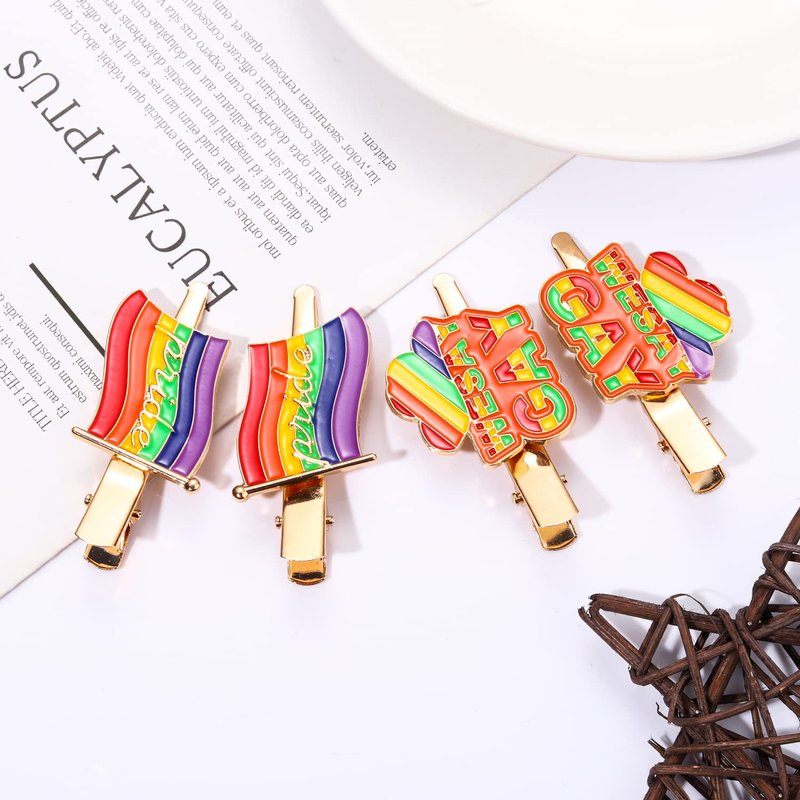 - Pride Hair Barrettes :Use this cute gold metal enamel alligator rainbow hairclips show your lesbian pride. Made with colorful enameled and high quality metal . The rainbow pride flag colors featured are as follows: red, orange, yellow ,green, blue and purple.This is a perfect hair accessory for Pride Month, allowing you to show your support for the LGBTQ+ community during parades, gatherings, or everyday life.