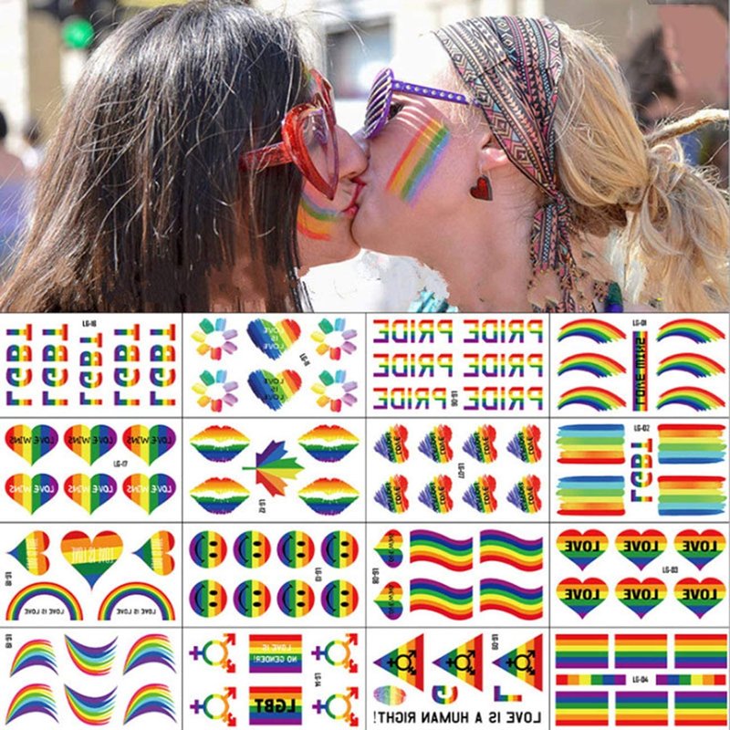 20 Sheets Pride Day Tattoo Stickers Body Art Rainbow Fake Tattoos Waterproof Sticker Decals for Gay Festival Decoration