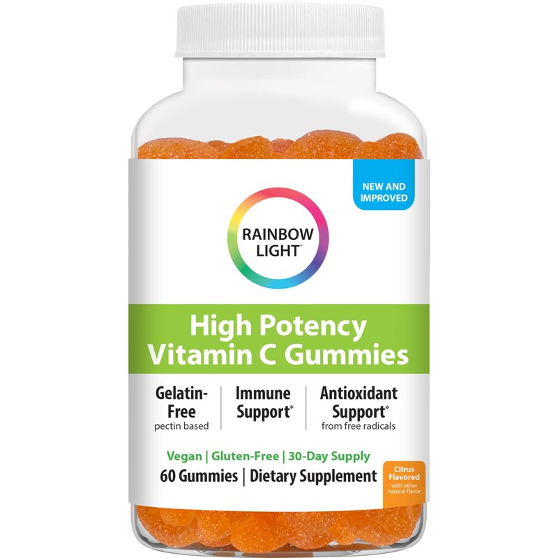 - DAILY VITAMINS: Includes one 60-count bottle of Rainbow Light High-Potency Vitamin C Gummies, delicious chewable vitamins for men, women and children that provide daily immune support (1)