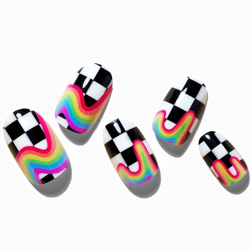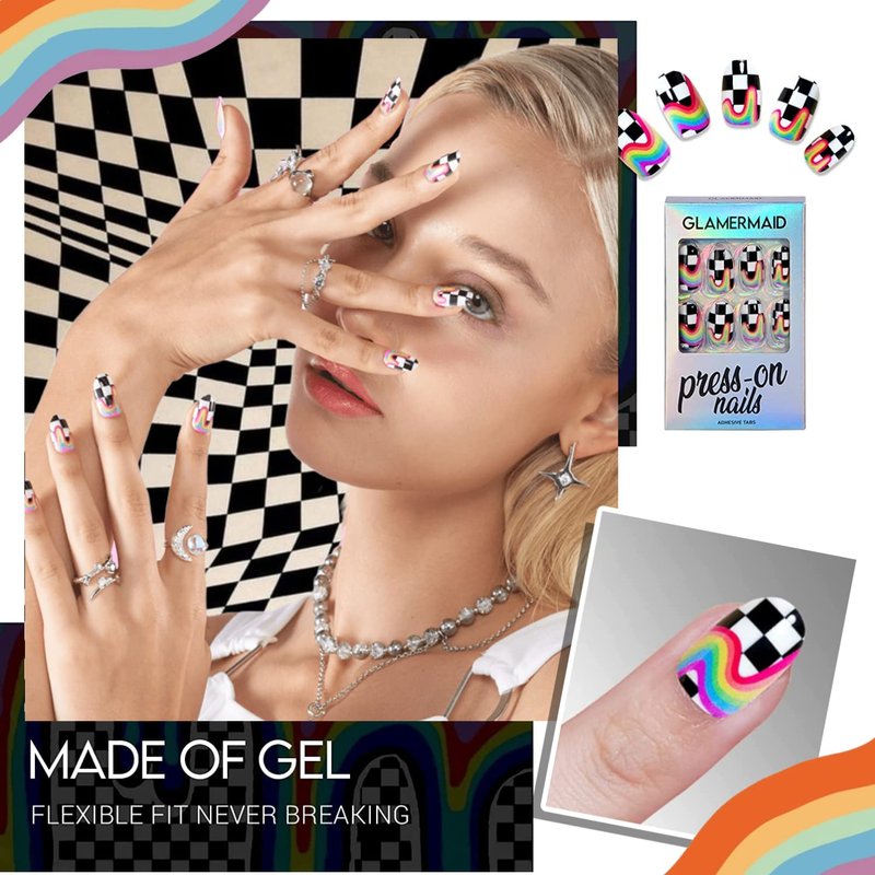 - 🌈【Every Mood, Every Moment】Classic vintage checkerboard rainbow--When the classic chessboard is combined with the natural elements of the rainbow, this just-right combination takes you on a collision course of classics and nature. The black-white colorful nails are perfect for valentines, weddings, holidays, daily, party, bride, new year.