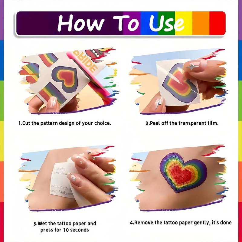 - 【Safe Material】-- Rainbow tattoo stickers are made of safe and environmentally friendly materials, skin-friendly, can be worn anywhere on your body.