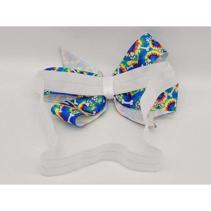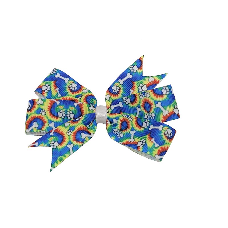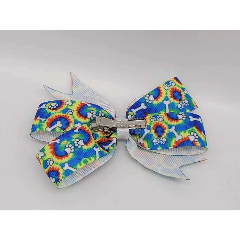 Rainbow Tye-Dye Dog Paw Print and Bones Hair Bow