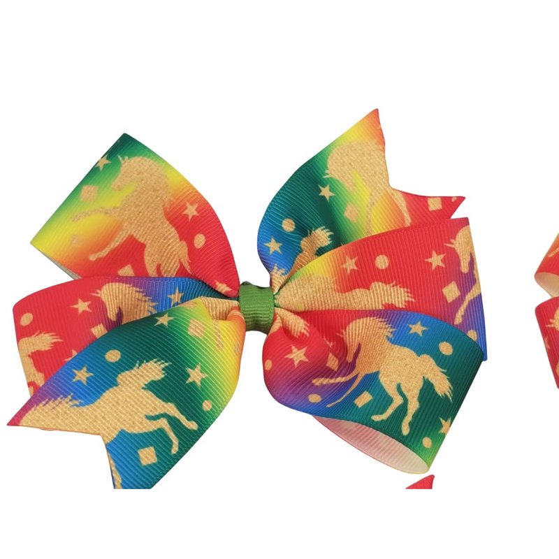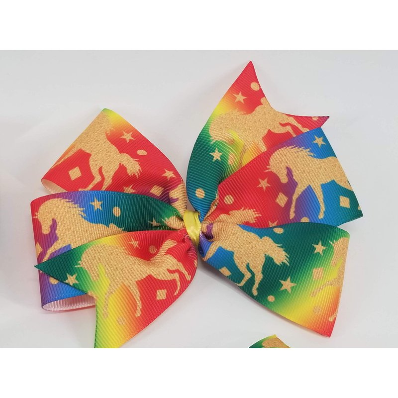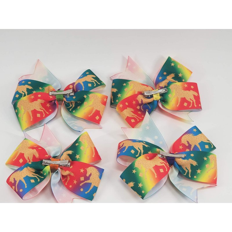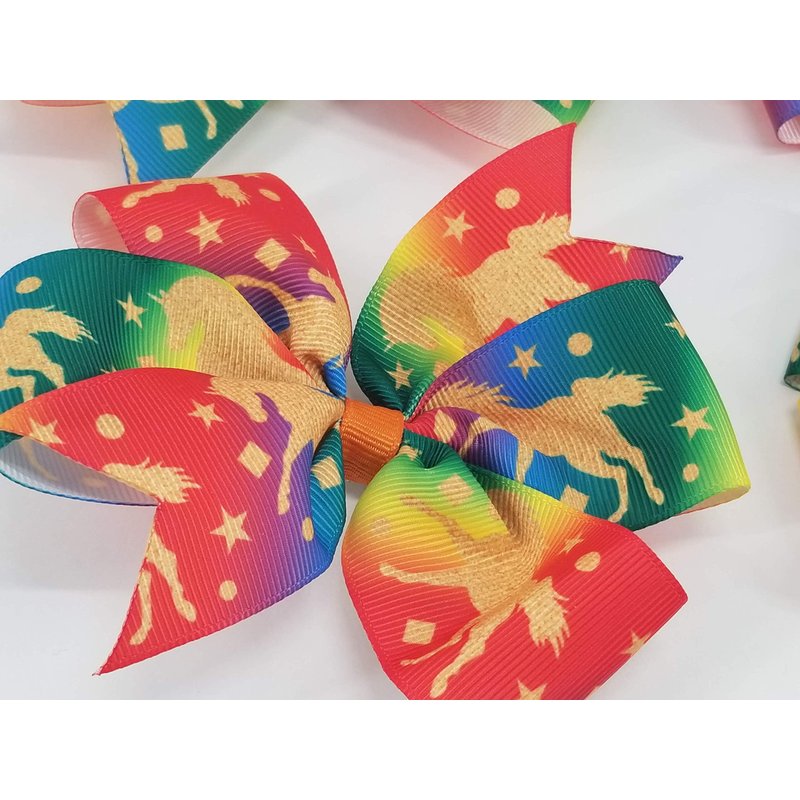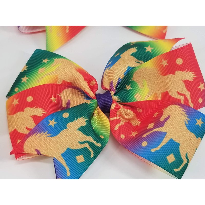 All my hair bows are made with quality decorative ribbons and sturdy metal alligator clips. They are a great accessory to many outfits. Alligator clips are great to keep the bows in the hair securely. Each hair bow measures approx. 4-5 inches across. Each bow will vary slightly depending on where the pattern/logo lays out.