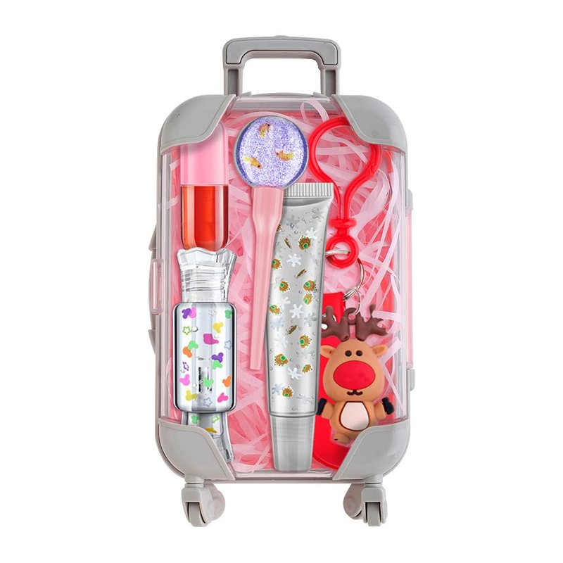 Introducing the Rainbowlovers Christmas Lip Care Set, a delightful and festive treat for lip care enthusiasts for little ladies! This charming set features a Cute Reindeer Mini Keychain with four vibrant lip gloss shades, all neatly housed in a stylish Trolley Case that's perfect for hanging on your bag or keys. Elevate your holiday season with this adorable and practical lip care collection. Festive Fun: The Cute Reindeer Mini Keychain adds a touch of holiday cheer to your accessories. Clip it to your keys, bag, or backpack for a festive and functional accessory that's always within reach. 💄 Four Colors, Endless Possibilities: Our lip gloss set includes four gorgeous colors, allowing you to create a variety of looks to suit any occasion. From subtle sheens to bold pops of color, this set has you covered for every festive event. 👜 Stylish Trolley Case: The compact and chic Trolley Case not only keeps your lip glosses organized but also serves as a trendy accessory. Hang it on your bag or keychain for easy access to your favorite lip shades wherever you go. 🎁 Perfect Gift for Girls: Looking for a cute and practical gift for the holiday season? The Rainbowlovers Christmas Lip Care Set is a delightful choice. Ideal for stocking stuffers, Secret Santa, or as a treat for yourself, this set is sure to bring smiles all around. ✨ Quality You Can Trust: Rainbowlovers is committed to delivering high-quality products, and this lip care set is no exception. The lip glosses provide a smooth and glossy finish, ensuring your lips stay hydrated and beautiful throughout the holiday festivities. Add a touch of festive glamour to your lips with the Rainbowlovers Christmas Lip Care Set. Treat yourself or surprise someone special with this adorable and functional beauty accessory!