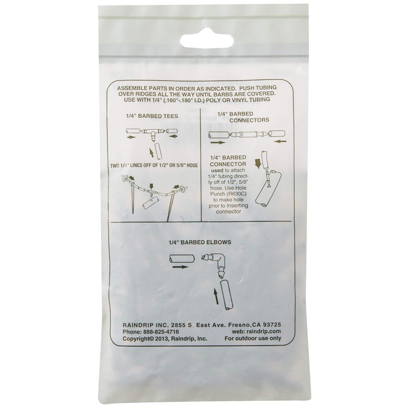 Raindrip 312050B Drip Irrigation Fittings Single Barbed Coupling Connectors, 1/4-Inch, 50 Per Bag, for Trees, Shrubs, Black