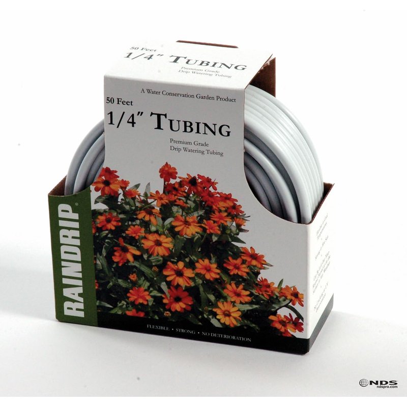 Raindrip R255DT 1/4-Inch Drip Irrigation Supply Tubing, 50 Foot, , for Drip Irrigation, Drip Emitters, Irrigation Parts, Systems, White Polyethylene