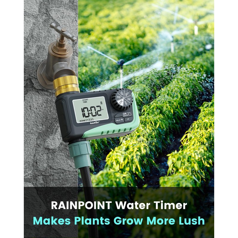 - 360° Brass Inlet: RAINPOINT watering timer built-in metal filter, water inlet, and metal thread, strong and durable, enhanced durability, can protect this sprinkler timer from water leakage. The shell is built in with heavy-duty weatherproof construction, ideal for outdoor garden watering use, and can withstand wind and rain.