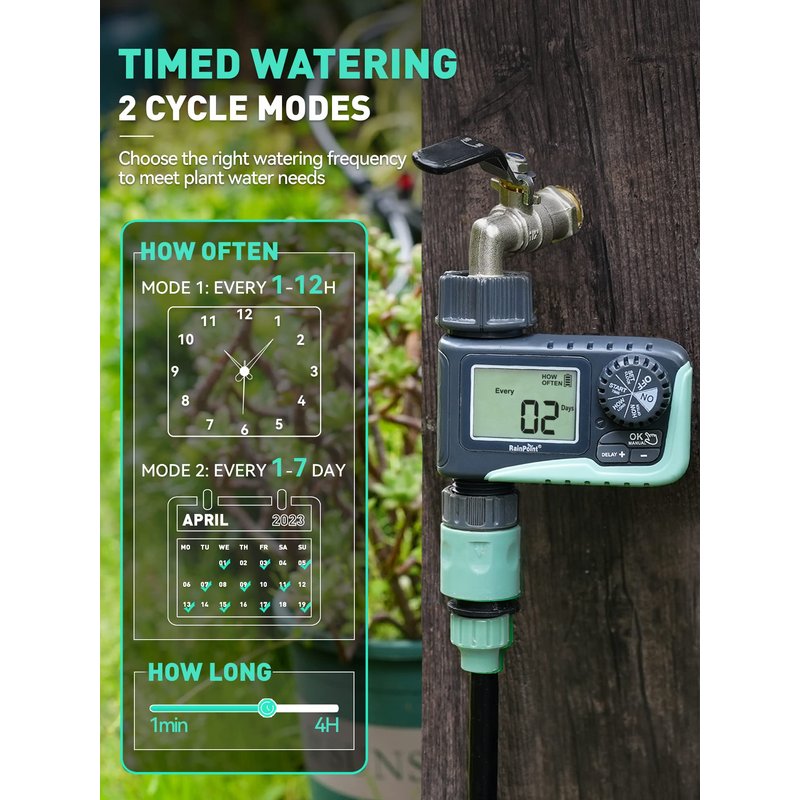 RAINPOINT Sprinkler Timer,Water Timer Programmable Garden Outdoor Hose Feature Timer with Rain Delay/Manual/Automatic Watering System,Waterproof Digital Irrigation Timer System for Lawns Pool,1 Outlet