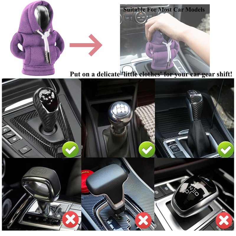 --- This hoodie car gear shift cover can also protect your car shift from scratches and abrasions,cover existing scractches,shield the gear shift knob from scorching sun,prevent gear shift from aging or wearing, extend the service life of your gear shift and keep it looking brand new! Add a comfortable layer of protection to your car shift knob now!