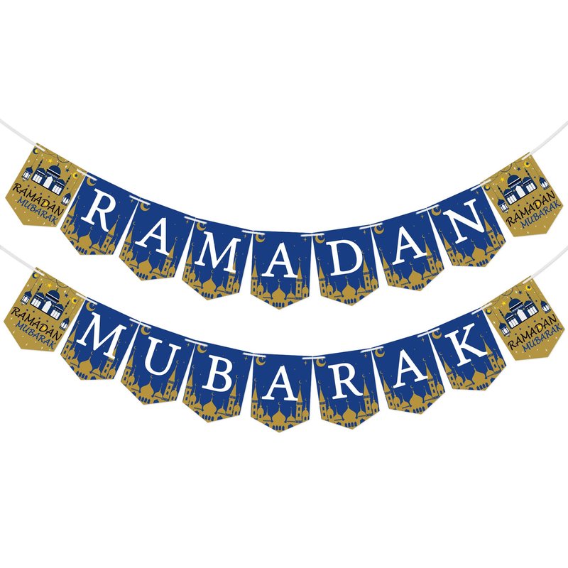 - DURABLE MATERIAL: This blue Ramadan Mubarak bunting banner is made of sturdy cardstock paper, each card of the banner is individually inspected then carefully packaged by hand. This generous banner is durable enough to hang for serval days and it is very easy to fold up for convenient storage.