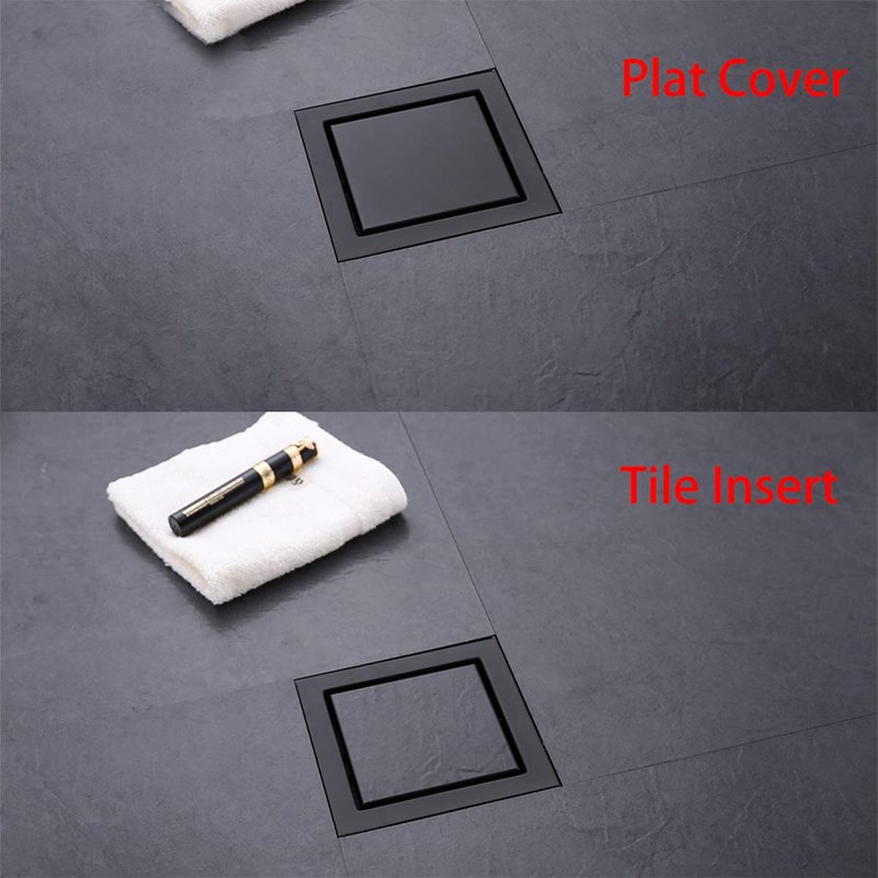 RANDOM Matte Black Square Shower Drain with Removable Tile Insert 6 Inch Drain Cover and Hair Strainer,SUS 304 Stainless Steel Black Shower Drain