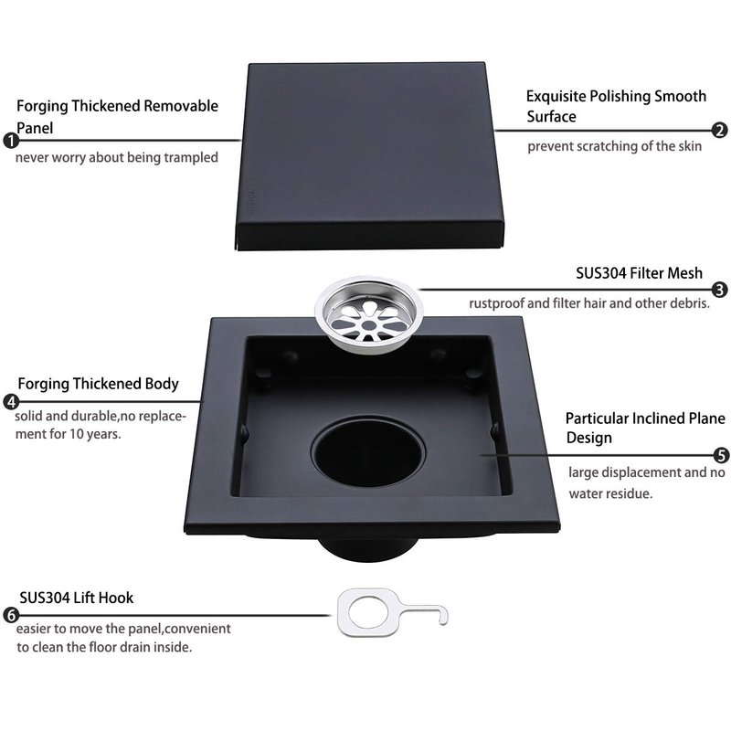 - Anti-rust: Matt black floor drain high-grade 304 stainless steel, to ensure strength and longevity, no rust.