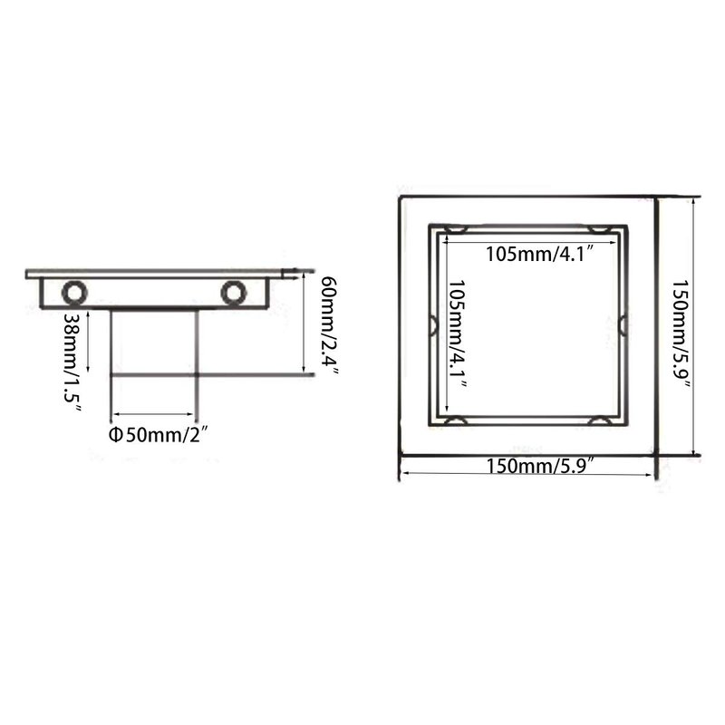 - Stylish and classic black square design, width is 5.9 inches, outlet is 2 inches, high flow rate (cannot be screwed into drain pipe type). Suitable for American NO HUB drainage base system, 2 inch PVC No-hub shower drainage base can be purchased separately