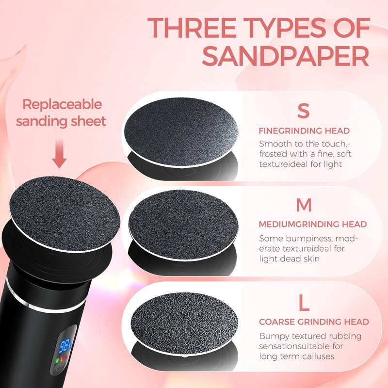 - 【60pcs Replaceable Sandpaper Refill Discs】 Each foot file callus remover includes 60pcs replaceable sandpaper refill Discs (20 large grits,20 medium grits and 20 fine grits) suitable for all skin types.Refill pads of foot scraper are self-adhesive and won't fall off while working.After each use, replace the sandpaper disk with a new one for the next person, keeping things clean and healthy