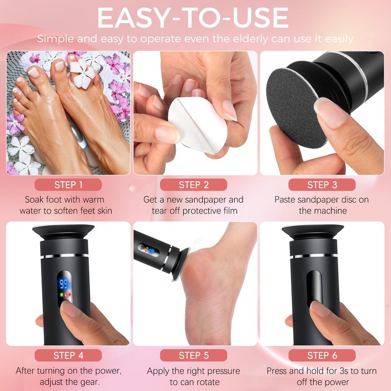 The operating steps of the smooth pedicure wand are extremely simple.