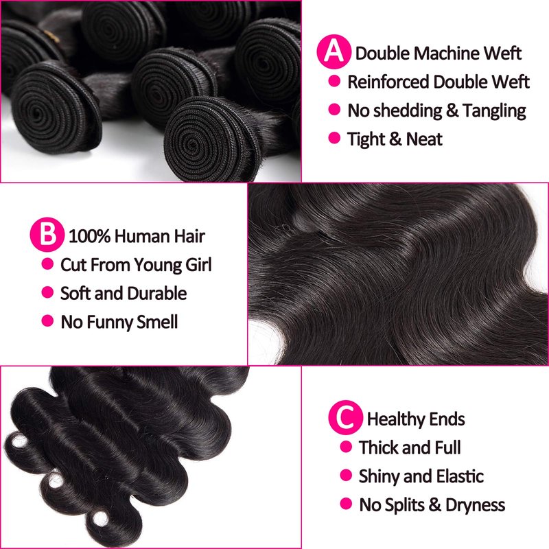 - Body Wave Bundles Material:12A Grade human hair bundles 100% Brazilian virgin human hair,cut from young girls, no synthetic hair or animal hair, soft and elastic, clean and healthy. High quality Bundles,you deserve,show your confidence and beauty.
