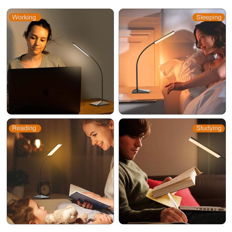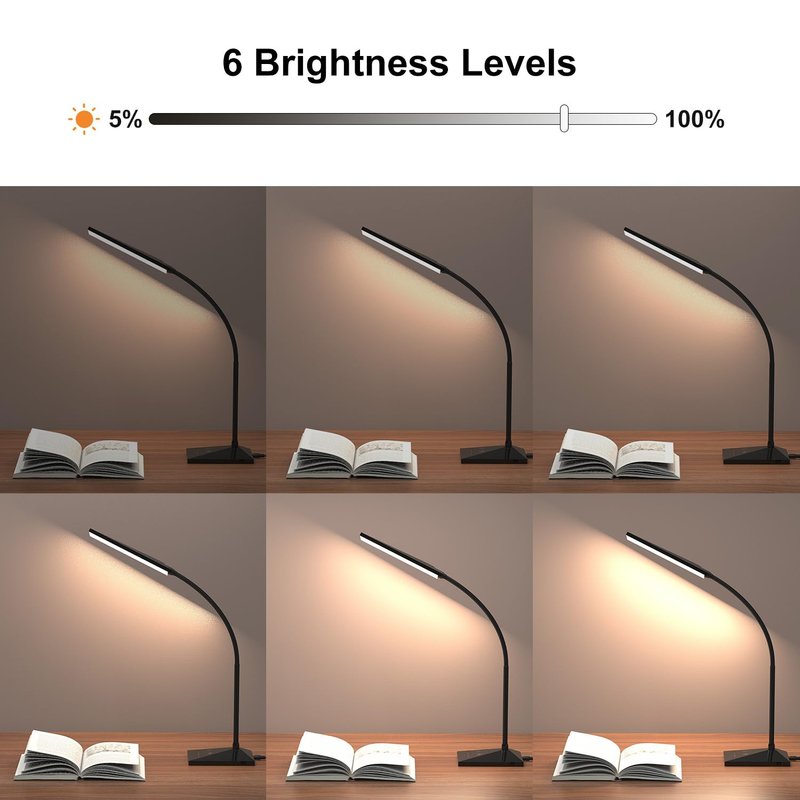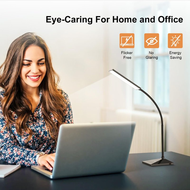This Desk Lamps features energy-saving, low power consumption, adjustable and dimmable for 6 levels brightness and 5 lighting modes. Non-flickering lighting is comfortable for your eyes which efficiently reduces eye strain. Perfect for home office bedrooms and reading room use.