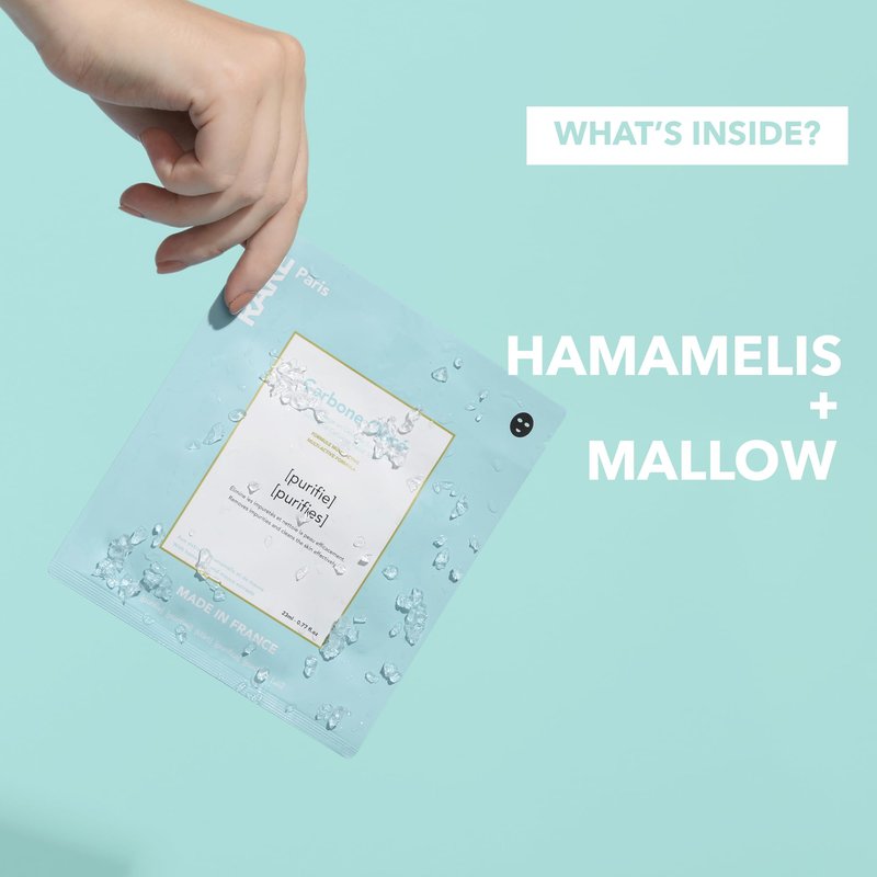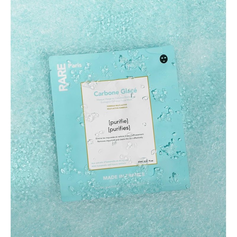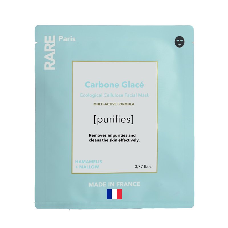 RARE Paris Carbone Glacé Purifying Facial Mask - Purifying Carbon Black Sheet Mask with Hamamelis & Mallow - Purifying, Firming, Revitalizing - Made in France - 1 sheet