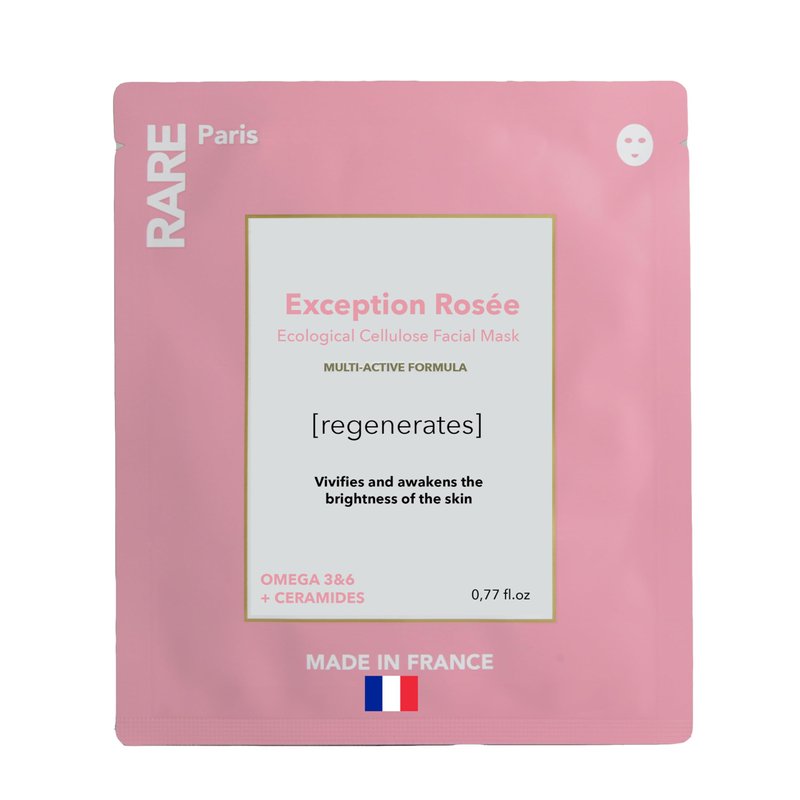 RARE Paris - Exeption Rosée Regenerating Facial Mask - Hydrating & Brightening Sheet Mask with Ceramides & Omega 3 & 6 - Anti-Aging, Firming, Revitalizing - Made in France - 1 Sheet