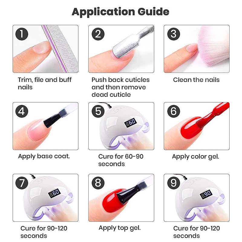 1. Before applying, please ensure your nails are completely dry, clean and oil-free, which keeps the gel lasting longer.