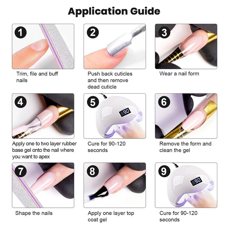 - 【CURING REQUIRED】Gel nail polish require a U V or LED nail lamp to cure, harden, or set your gel nail polish in place. Gel formulas cannot air dry down and will only be set entirely using a nail lamp. In addition,rubber bases need to be cured. In general, UV lamps will take longer to cure than LED lamps.