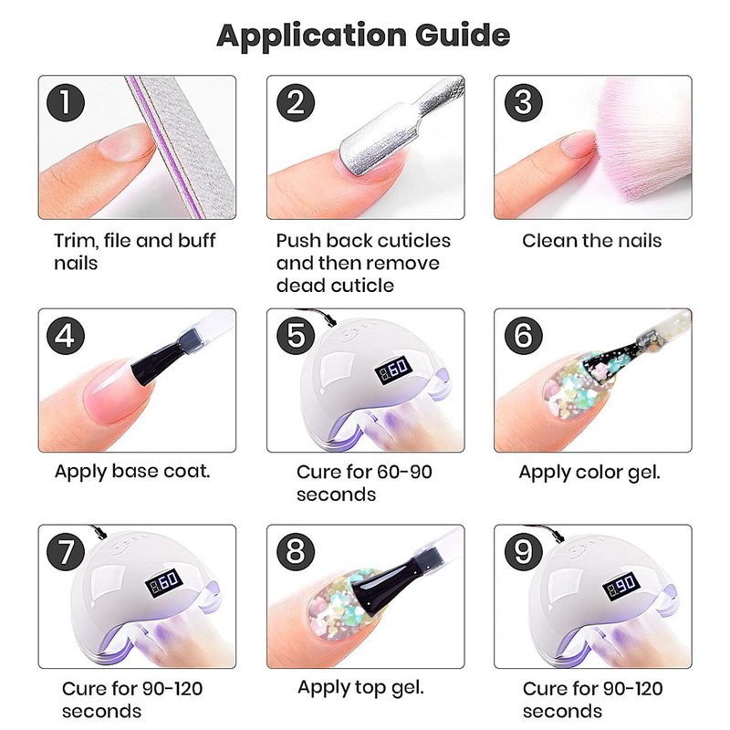 - WARM TIPS:Please read the instructions carefully before using the multi color glitter gel polish.Avoid the sparkly glitter nail gel contact with eyes,mouth and skin.If fell unwell, contact the doctor immediately.If there is any problems, for example, the bottle leaked when you received it or you have issues when curing and so on.We always keep active to help you solve problems.