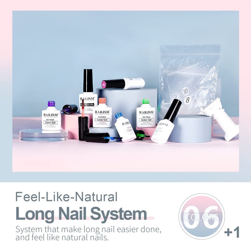 - 【JELLY GEL NAIL POLISH SET】RARJSM Translucent jelly nail polish gel Set contains 6* 0.25oz Jelly colors gel, Nail Glue 0.25oz, 10 Sizes Long Fake Nails, Neon Nail Polish Set including Pink Green Blue Purple Yellow Orange.