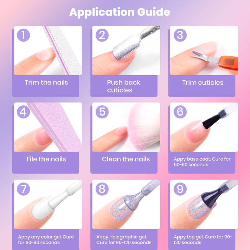 - MAGIC HOLOGRAPHIC EFFECT: 6 different shades of popular and trendy pastel pink purple colors suitable for all seasons and daily routine life!Sivler holographic nail gel makes a great combine of chrome mirror effect and laser chameleon effect while on other 5 color gel.