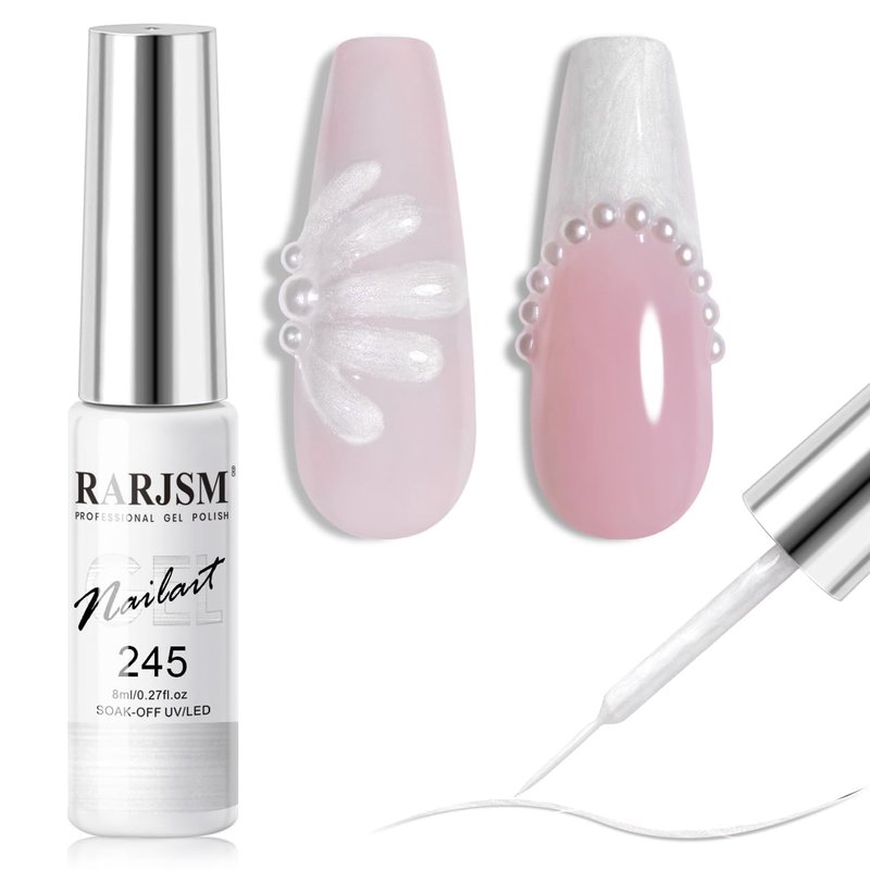- 【PEARL SILVER GEL LINER】Pearl white is the base color of nail manicure decoration, especially for nail art manicures. It not only creates a gorgeous momentum for your nails. The minimalist approach to the manicure design is the silver white glitter line, so this pearl shell glitter silver nail art gel liner is your essential one.