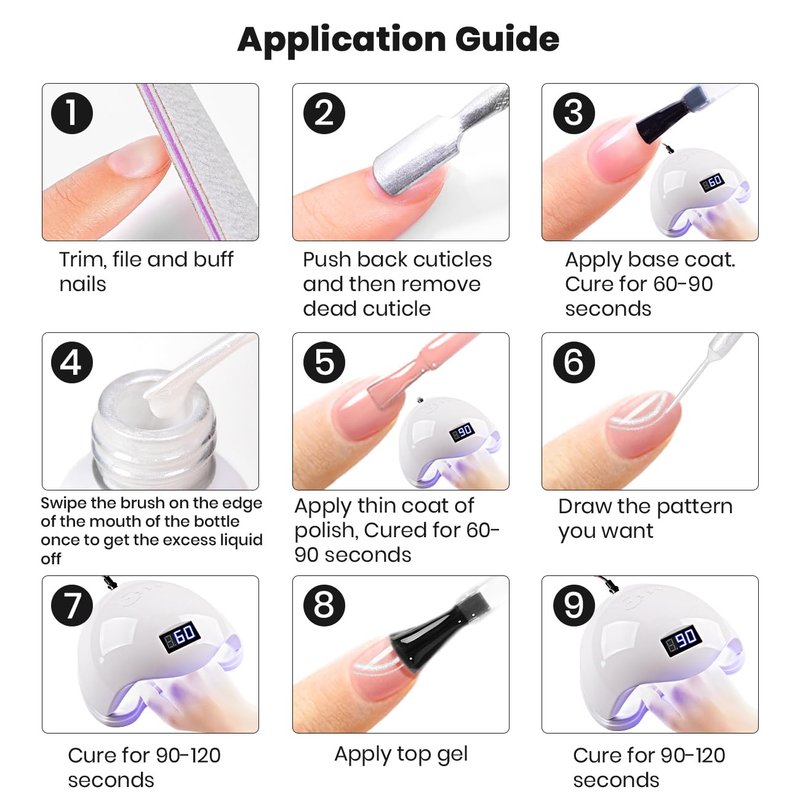 - 【BUILD IN THIN BRUSH】New design with the pearl white painted gel nail polish and the pull line pen combined is super convenient for the salon beauty salon or at-home personal use for starters. Each bottle has a thin pen brush, no need to change and wash clean the drawing liner pen brush when doing the nail art.