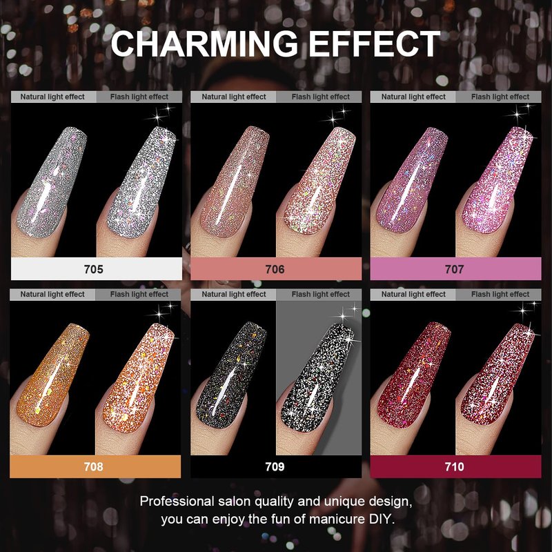 - FOR ALL CHOICE:Reflective glitter gel nail polish set has the latest design,charming effects,it is very suitable for giving,when Halloween,Thanksgiving,Christmas,Valentine's Day,birthdays are approaching,you can give it to your friends and family.You can also give it to yourself,and infinitely showcase your fashion and charm