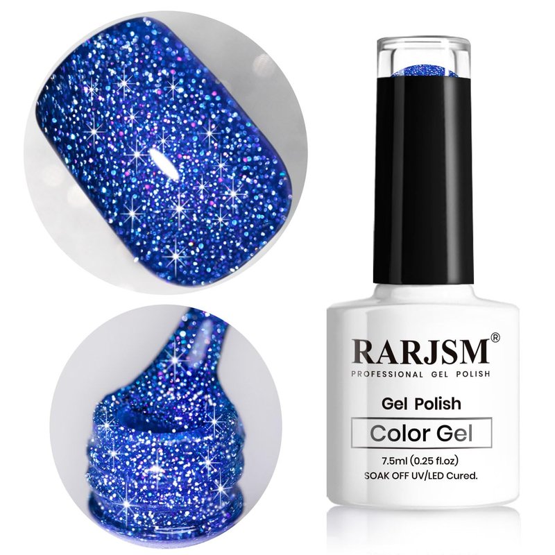 RARJSM Reflective Glitter Gel Polish Royal Blue Sparkle Iridescent Rainbow Shimmer Dark Blue Gel Nail Polish 7.5ml Soak Off Sparkle Flash Disco Diamond Nail Gel Polish Salon DIY Home Manicure