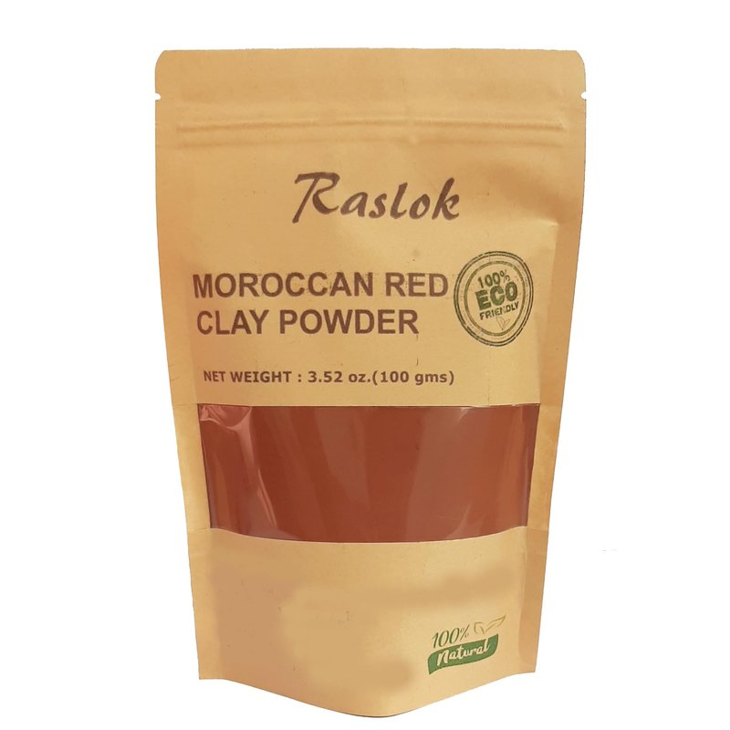 Raslok Moroccan Red Clay Powder 100g | 3.52 oz. | Suitable for Face Mask, Scrub,Soaps,Bath Bombs, Body Wraps | Very Fine Powder | No Additives | Detoxifies, Removes impurities