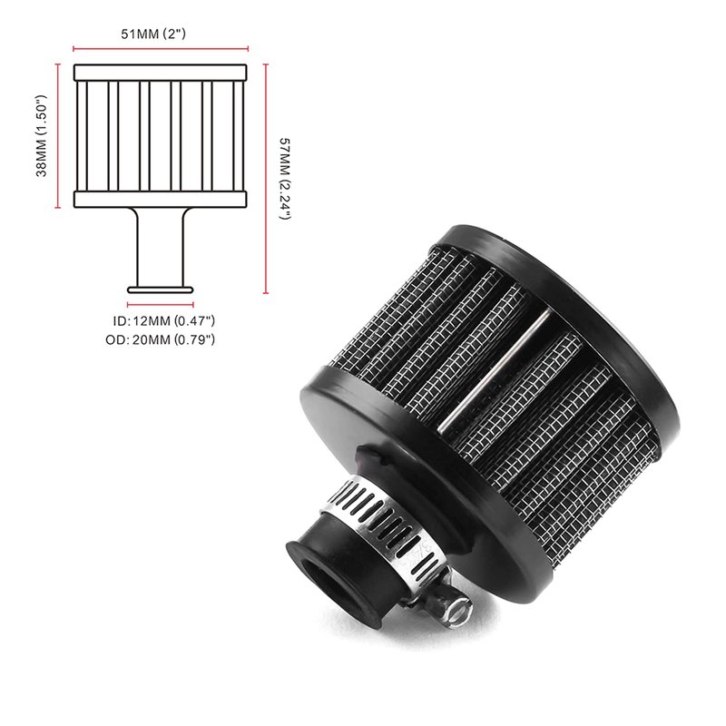 RASNONE 12mm Air Filter Cold Air Intake Filter Breather Turbo Vent Air Intake Filter Cleaner Black Universal for car and Motorcycle